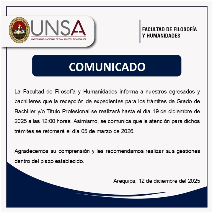 Lugar: Salón de Grados Mariano Melgar de la Facultad de Filosofía y Humanidades