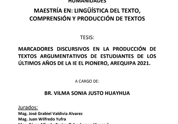 MARCADORES DISCURSIVOS EN LA PRODUCCIÓN DE TEXTOS ARGUMENTATIVOS DE ESTUDIANTES DE LOS ÚLTIMOS AÑOS DE LA IE EL PIONERO, AREQUIPA 2021.